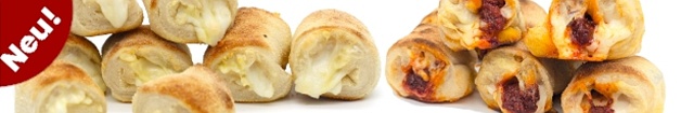 Gefüllte Pizzabrötchen 8 Stk. gefüllt mit Käse, inkl. Dip + Salami